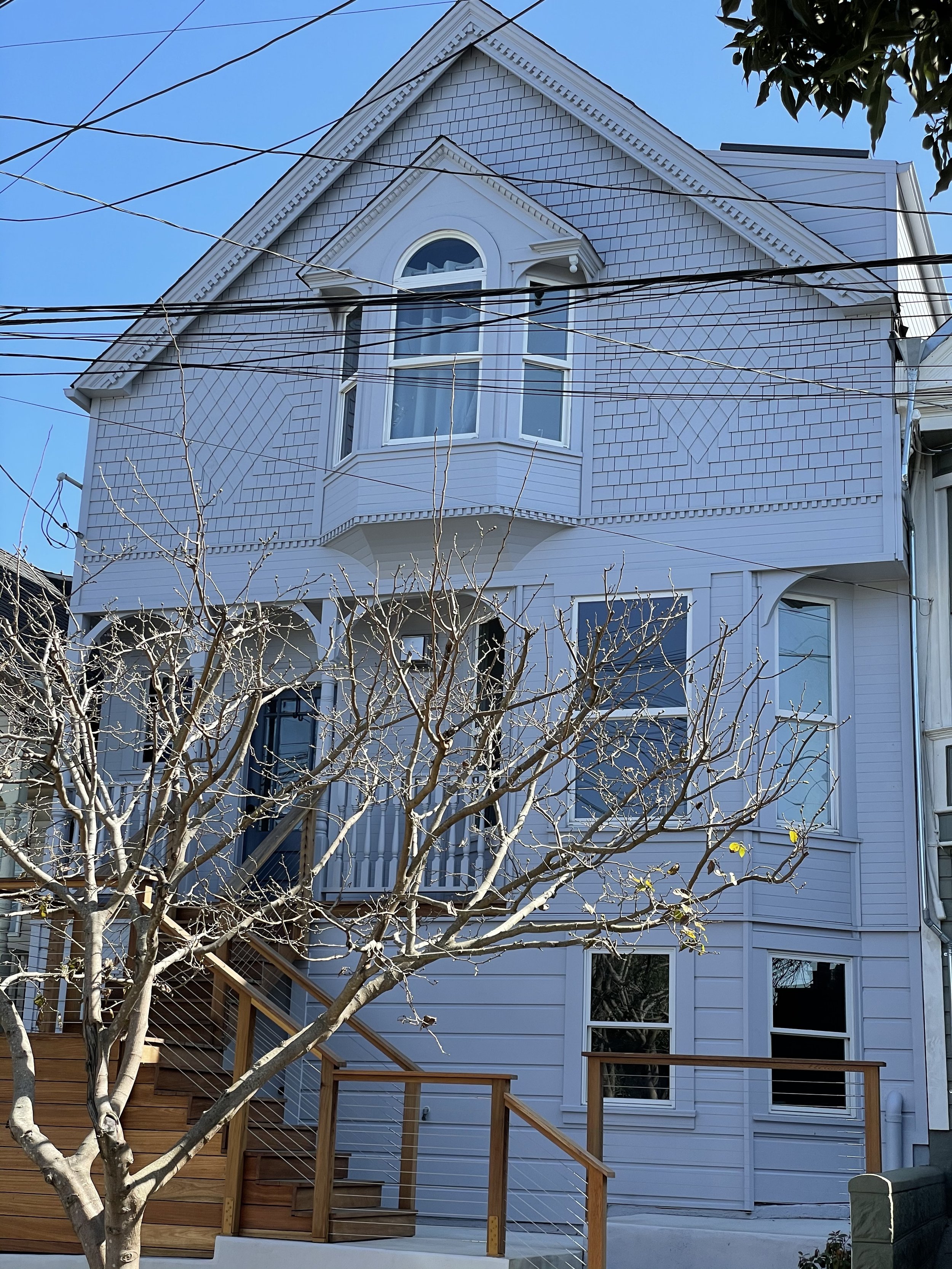 Custom exterior trim and siding, historical facade, Bernal Hill, San Francisco.
